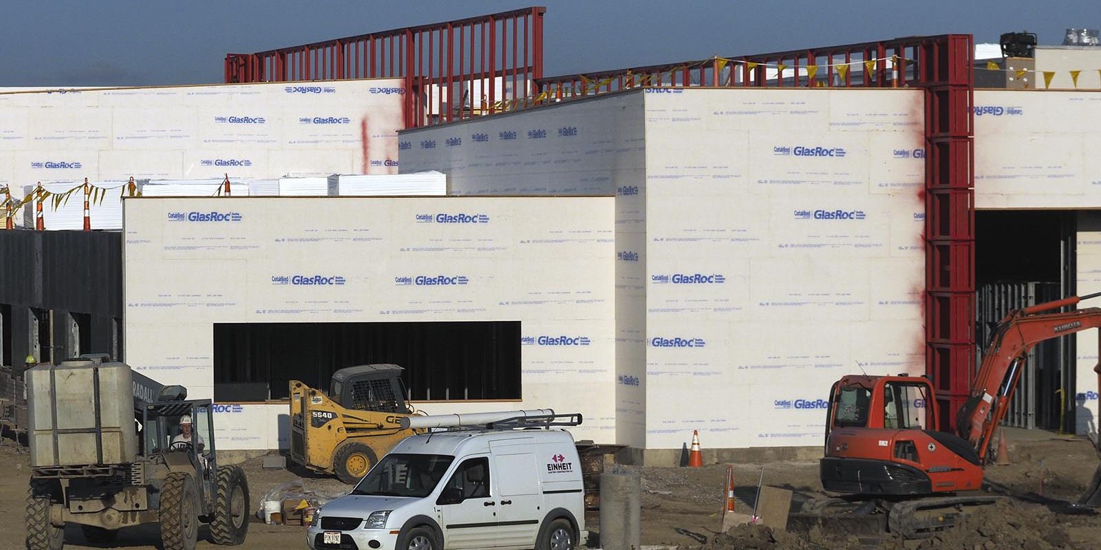 We fabricated and erected the 385-ton two-story office and showroom and 40,000-square-foot warehouse and ground-to-roof free standing screenwall that spanned the entire building. In addition, we built and installed the monumental stairs and stainless steel railings.